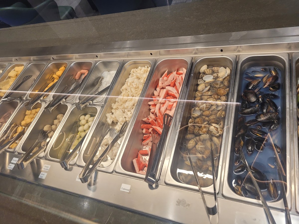 “ This was a terrific experience. Everyone should try this. You first choose a broth for the hot pot. I like the Tom Yum but the Kimchi was very good also. Then pick all the things you want in your Hot Pot (soup). I usually add several meats, mushrooms, vegetables, and noodles - there is a huge selection. Don't forget to add seasonings like garlic, sesame oil, green onions, pepper or whatever you like. While the hot pot cooks you can grill the meats you choose - I like the marinated meats which are excellent. There is also a nice selection of cooked food as well as sushi. Overall, it was an interesting way to have a nice meal with friends. ”